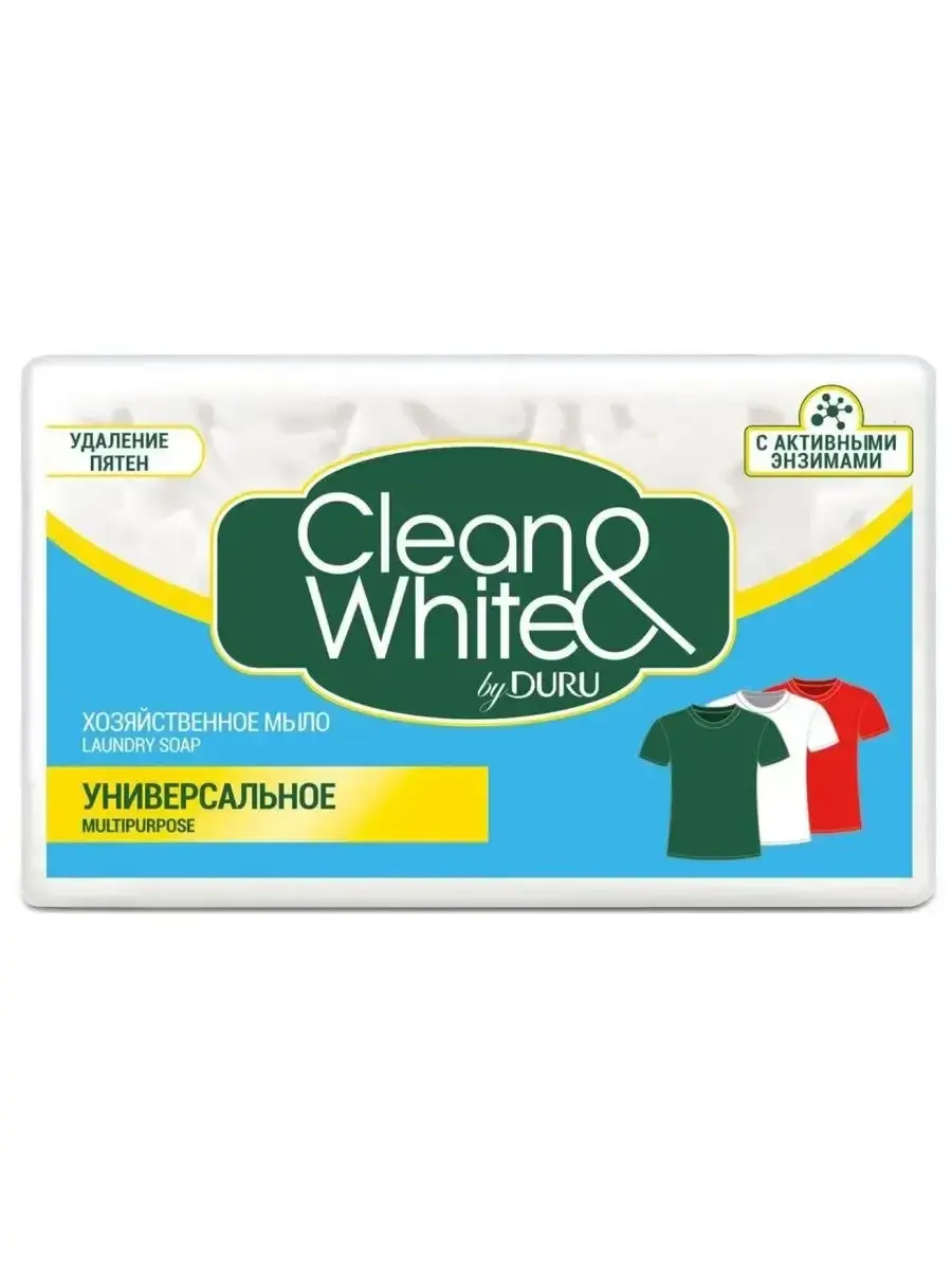Белоснежное мыло для стирки Clean & White Универсальное это незаменимое средство для борьбы с загрязнениями на тканях. Подходит для ручной стирки шерстяных вещей и мембранной одежды. Мыло хозяйственное для стирки Clean & White обладает приятным ароматом и эффективно справляется с пятнами благодаря энзимам веществам органического происхождения, которые обеспечивают удаление трудных загрязнений. Производится только на натуральной растительной основе. Не тестируется на животных. Дерматологически протестировано.