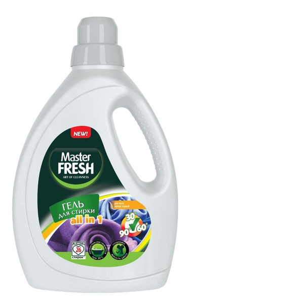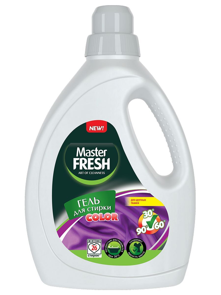 Гель для стирки цветных тканей Master Fresh Color подходит для машинной и ручной стирки. Входящие в состав натуральные компоненты отлично отстирывают застарелые пятна, справляются с засохшей грязью и устраняют неприятные запахи. Предназначено для стирки текстильных изделий из цветных тканей всех видов. Хорошо растворяется в воде, отстирывает различные загрязнения. Сохраняет структуру ткани, интенсивность и яркость цвета даже после частых стирок. Придает изделиям свежесть и приятный аромат. Объем - 1.3 л. Состав: 30% вода; 5%, но < 15% анионные ПАВ; < 5%: хлорид натрия, неионогенные ПАВ, парфюмерная композиция, силиконовый пеногаситель, замутнитель, лимонная кислота, оптический отбеливатель, консервант, краситель. Применение: перед применением энергично встряхнуть! Указанное в таблице количество средства вылить в специально предназначенное отделение стиральной машины (см. инструкцию к стиральной машине) или в таз с водой. Цветное бельё стирайте отдельно от белого. Сильно линяющее бельё стирайте при температуре не выше + 30 гр. С. При наличии трудноудаляемых пятен рекомендуется предварительное замачивание или дополнительное использование пятновыводящих средств. Геля Master Fresh Color вам хватит на 26 стирок, вы можете быть уверены, что ваши вещи надолго сохранят первоначальный вид и цвет.