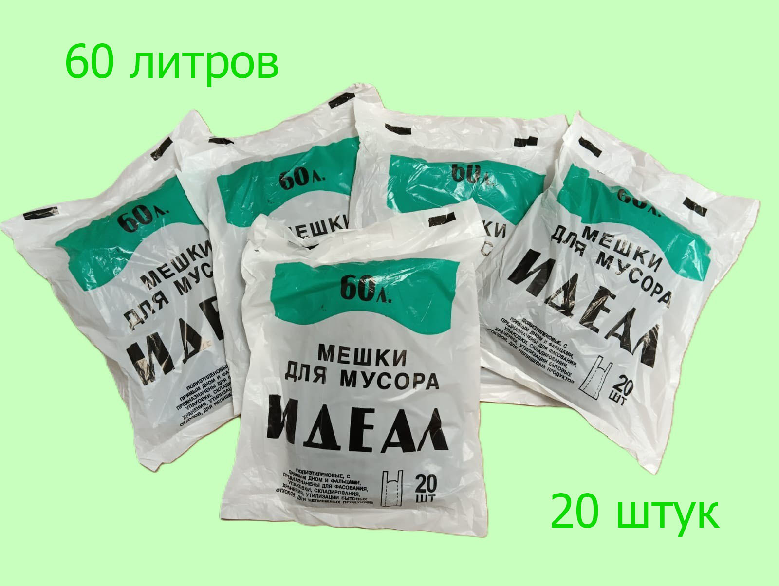 Каждый мешок имеет вместительность 60 литров, что позволяет собирать большое количество отходов. Упакованы мешки в пачки по 20 шт, которые удобно хранить.