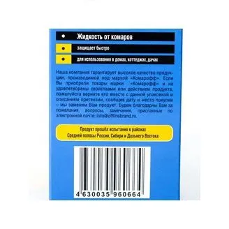 Комплект от комаров ОФФЛАЙН Комарофф, серия. Быстро Самая быстрая защита от комаров доказано миллионами покупателей всего 10 минут и насекомые уничтожены.Одно действие Мгновенное уничтожение достаточно воткнуть фумигатор с жидкостью в розетку.Спокойный сон защита до 45 ночей.Уникальный двухкомпонентный состав.Эффективность подтверждена Ростестом и Роспотребнадзором РФ.Продукт прошел испытания в районах средней полосы России, Сибири и Дальнего Востока.Универсальный электрофумигатор - работает как с пластинами, так и с жидкостью.Поворотная вилка позволяет устанавливать электрофумигатор в горизонтальные и вертикальные розетки.Благодаря двум резисторам в электро фумигаторе, обеспечивается равномерное и стабильное испарение средства.Комплектация:Универсальный электро фумигатор.Флакон с жидкостью 30 мл.