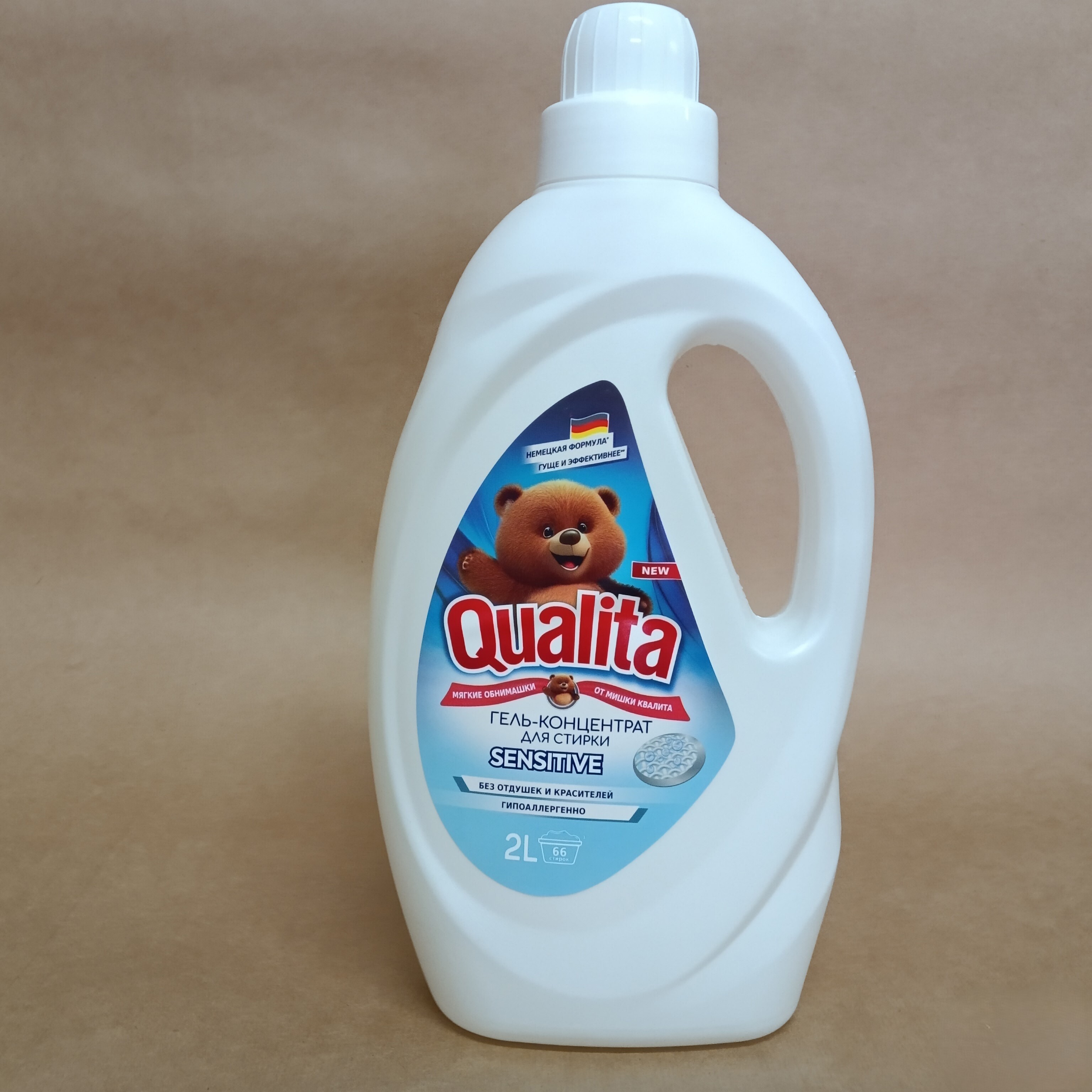 Гель для стирки QUALITA SENSITIVE без запаха содержит особую формулу без отдушек и красителей. Бережно относится к тканям и легко выполаскивается, минимизируя воздействие на кожу. Эффективно удаляет ежедневные загрязнения и подходит для стирки вещей из хлопчатобумажных и синтетических тканей в стиральных машинах любого типа и ручной стирки за исключением шерсти и шелка.