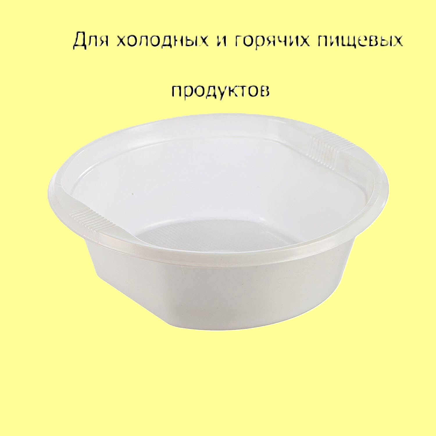 Тарелка глубокая 500 мл пластиковая производства компании "Чайковский пластик", модель "Экстра". Предназначена для фасовки холодных и горячих пищевых продуктов, в том числе супов, мясных и овощных блюд, гарниров. Изготовлена из полистирола (ПС), поэтому желательно использовать только для розлива горячих блюд, разогрев изделия в микроволновой печи не рекомендуется. Стандартный объем в 500 мл, цвет тарелки - белый. Произведена в России.