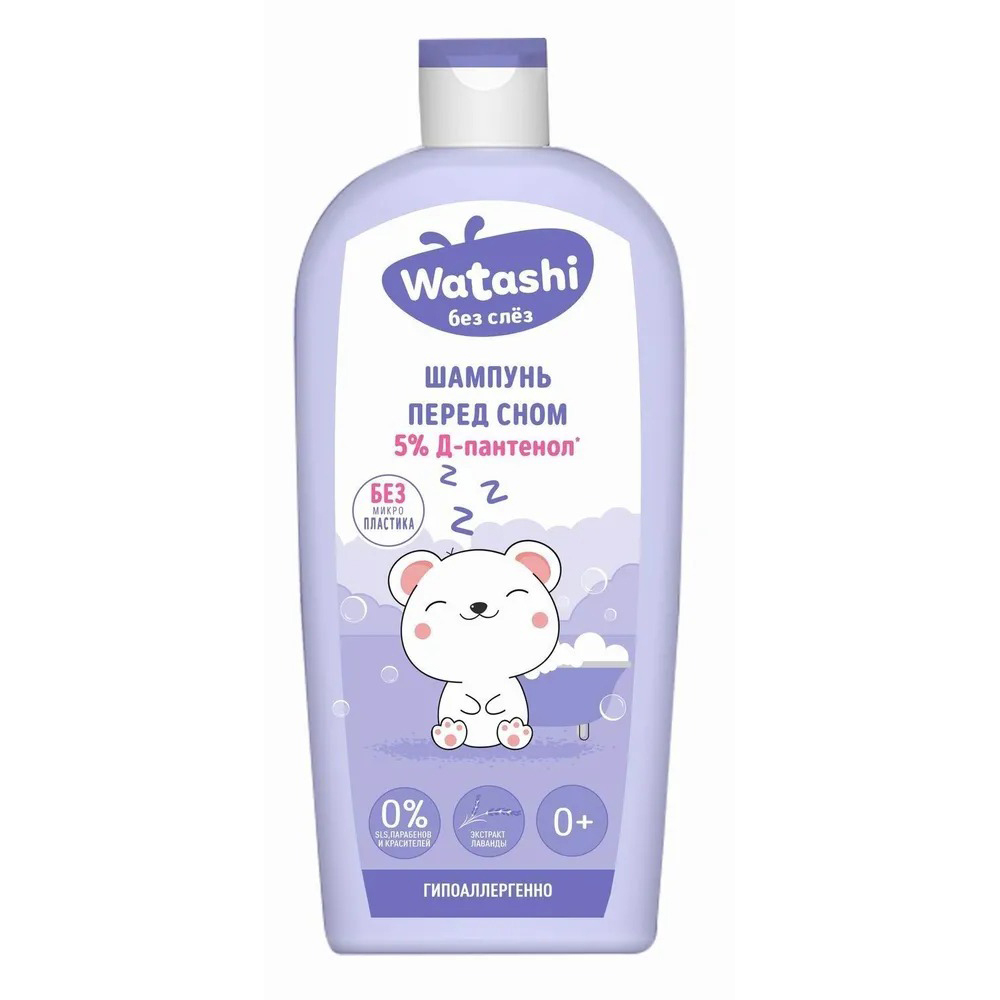 **WATASHI Детский успокаивающий шампунь перед сном 0+**Нежный детский шампунь WATASHI бережно очищает волосы и кожу головы, обеспечивая мягкий уход. Он разработан специально для детей с рождения и подходит даже для чувствительной кожи.**Основные характеристики:*** Не содержит сульфатов, парабенов, красителей и аллергенов.* Успокаивает нервную систему и помогает подготовиться ко сну.* Делает волосы мягкими и шелковистыми.* Подходит для ежедневного применения.* Объём: 250 мл.В состав шампуня входят натуральные компоненты, которые не только очищают волосы, но и ухаживают за ними. Экстракт лаванды успокаивает нервную систему ребёнка и настраивает его на сон. Пантенол увлажняет и питает волосы, делая их мягкими и блестящими.Шампунь WATASHI — это идеальный выбор для родителей, которые хотят обеспечить своему ребёнку нежный и эффективный уход. С ним вы можете быть уверены в том, что кожа и волосы вашего малыша будут чистыми и здоровыми.Способ применения: нанесите небольшое количество шампуня на влажные волосы и кожу голову, вспеньте и тщательно смойте тёплой водой. При необходимости повторите процедуру.Для достижения наилучшего результата рекомендуется использовать шампунь вместе с другими продуктами из линейки WATASHI для детей. Это поможет обеспечить комплексный уход за волосами и кожей головы вашего ребёнка.